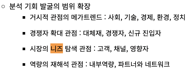 📍분석 기회 발굴의 범위 중 시장니즈 탐색 관점에서 '고객니즈의 변화'에 해당하는 것?