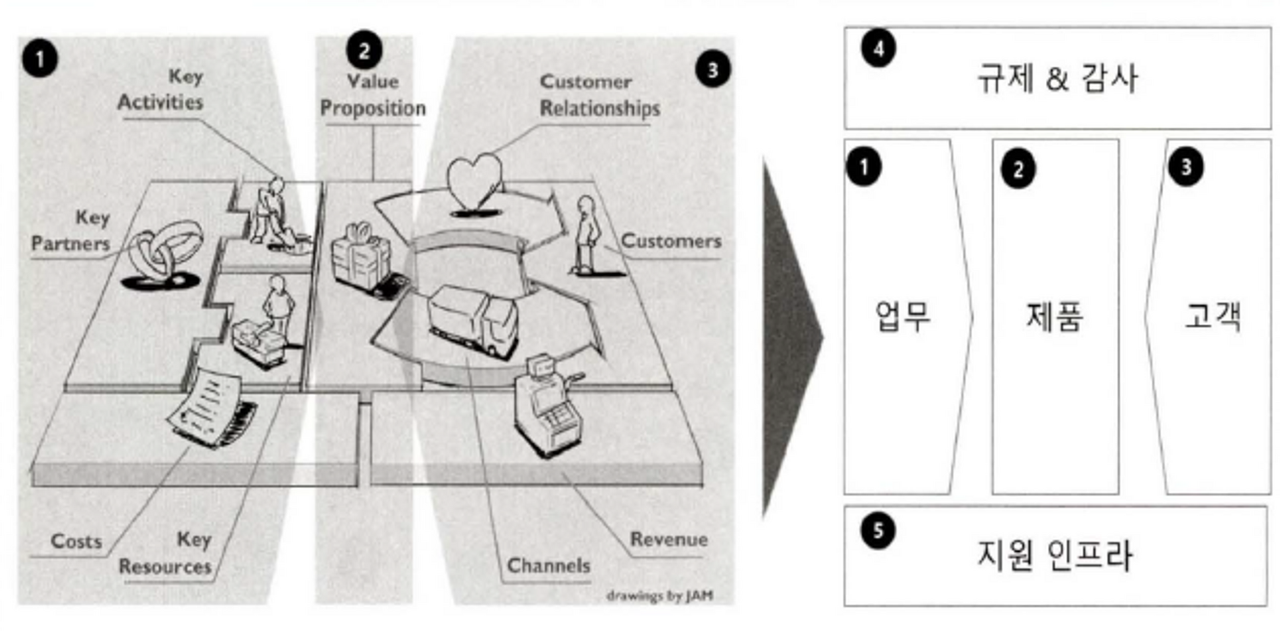 9가지 블록을 단순화 하여 업무, 제품, 고객 단위로 문제를 발굴하고
